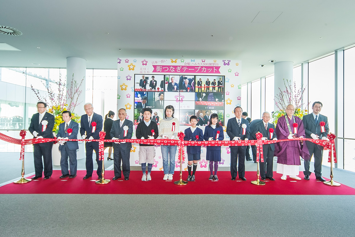 グランドオープンの日には、3,000mのテープで「あべのハルカス」と地域を結び、日本一長いテープカットセレモニーが行われました。