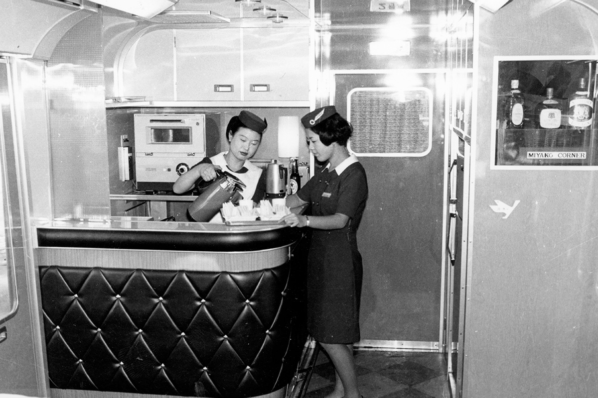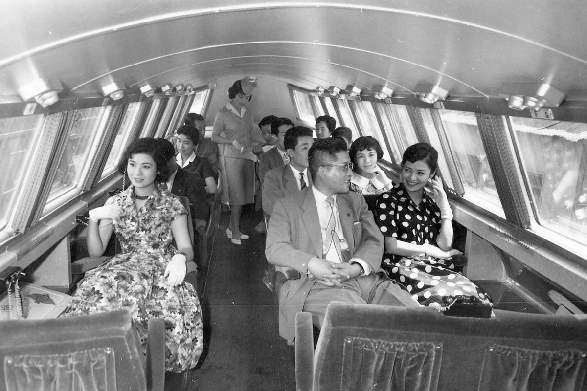 サービス内容も拡大し、1957年から特急車両に列車公衆電話(日本初)、シートラジオ(日本初)、車内冷房などの特別装備を整え、おしぼりサービス(日本初)など新たな取り組みを導入していきました。こうした積極的なサービスの導入は、近鉄特急のサービスが草創期からいかに先駆的であったかを物語ります。