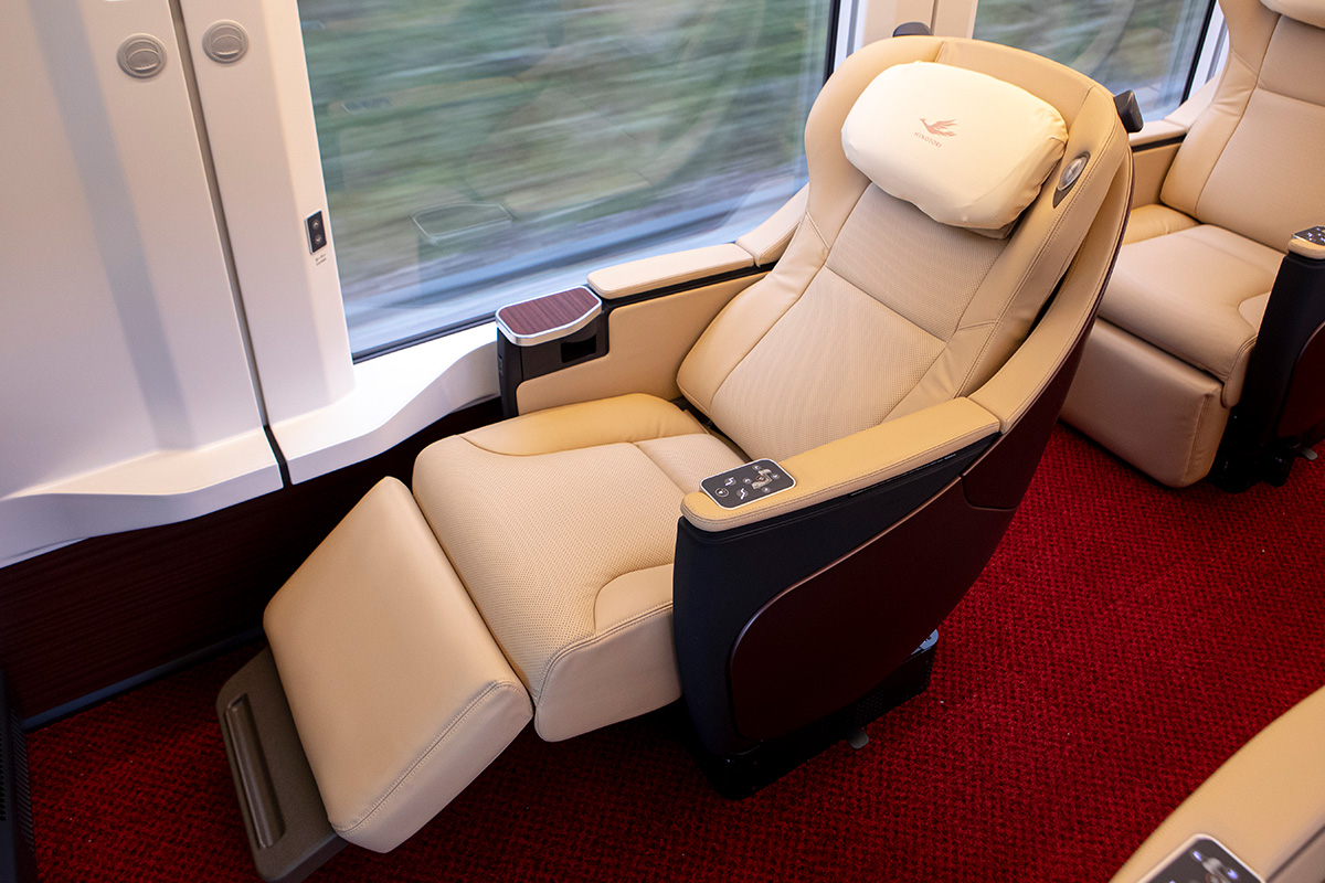 2020年には、大阪難波-近鉄名古屋間に「ひのとり」(80000系)が登場しました。「くつろぎのアップグレード」をコンセプトに、日本で初めて全席にバックシェルを採用し、プレミアムシートの座席間隔を日本最大級の130cmとするなど、お客さまの快適性を徹底して追求した特急車両です。大型荷物も収容可能なロッカーや荷物置きスペースの確保、4カ国語の車内情報表示、日本初のコーヒーサーバタイプの自動販売機の設置など、ビジネス利用のお客さまだけでなく観光のお客さまにも快適にご利用いただけるよう設計されています。近鉄の看板列車である名阪特急の魅力向上を図るとともに、都市間輸送の新たなスタンダードを目指しています。「ひのとり」は車内の快適性などが認められ、2020年にグッドデザイン・ベスト100、2021年にブルーリボン賞を受賞しました。
