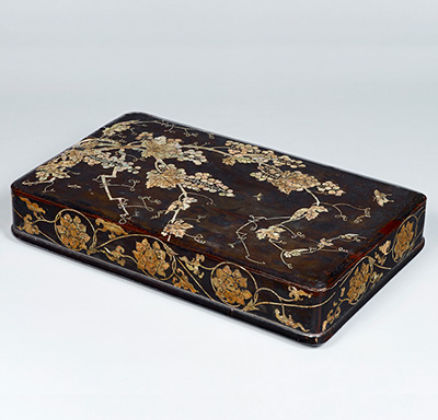 貝殻を用いて文様をあらわす螺鈿漆器は、朝鮮半島で盛んに制作されました。貝のやわらかな光彩により、巧みにあらわされた文様の美しさをお楽しみ下さい。