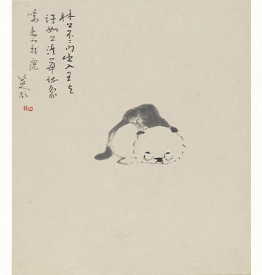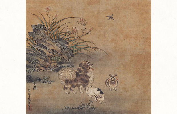 朝鮮半島では、朝鮮王朝時代(1392~1897)に、中国絵画を淵源とする吉祥的で華やかな作品が、宮廷を中心に描かれたほか、おもに民間で受容された、素朴で温かみのある「民画」の趣をもつ犬図・猫図が制作されました。中でも宗室画家の李巌(1499~1545~?)は、水墨を基調とした、文人的な雅趣のある動物画を制作しました。この李巌の犬図は、日本でも人気を博しました。