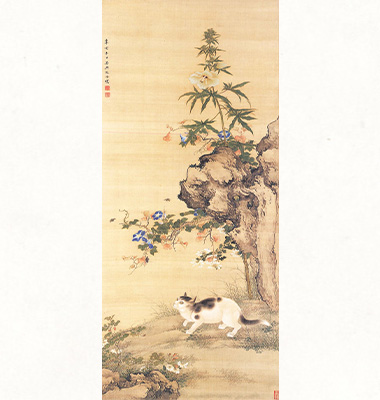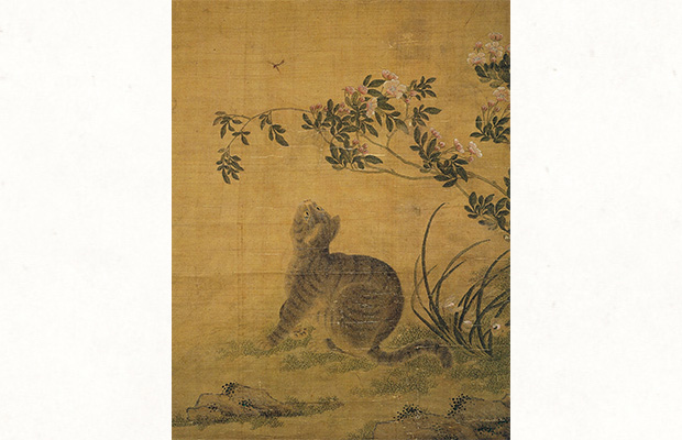 中国において、犬と猫のモチーフは、子孫繁栄や長寿などのおめでたい寓意(吉祥)をともなって、花木竹石などと共にしばしば描かれました。南宋(1127~1279)や明(1368~1644)の宮廷画家たちは、細緻な描写による、華麗で優美な作品を多数制作しました。また文人達は、簡略な描写で、墨の濃淡や筆線を活かして、身近な存在としての犬と猫の姿を描き出しました。中国のそれぞれの時代に生み出された犬図・猫図は、朝鮮半島や日本にも伝わり、それぞれの国での犬図・猫図の成立を促すことにもなるのです。