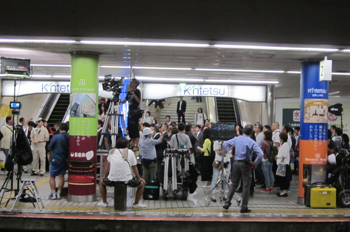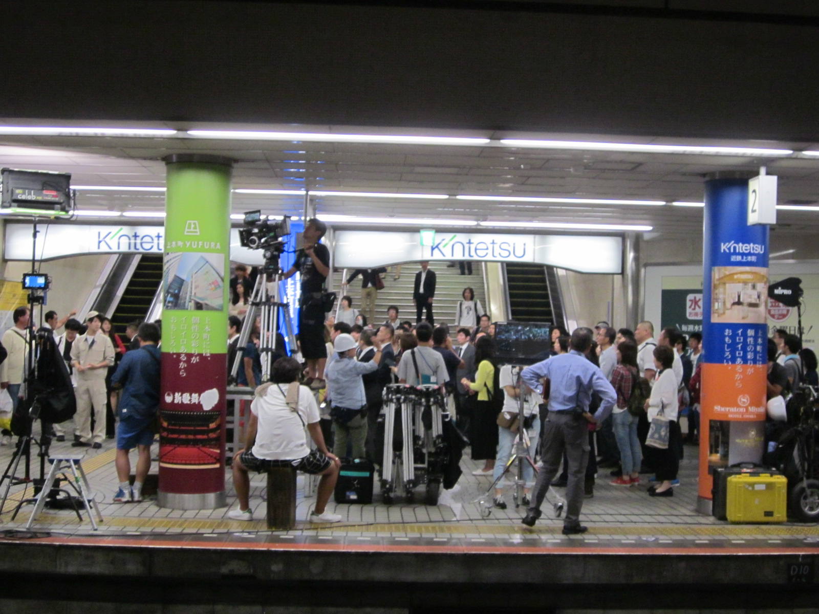 近铁大阪上本町站,以近铁百货店上本町店为首,周围有着由大阪新歌舞伎座和39家店铺构成的“上本町YUFURA”、大阪喜来登都酒店等各种设施。车站1天的人流量多达约7万人。由于白天不能拍摄,因此在末班车过后到始发车的这段时间里,拍摄了男主角逃跑的场景等。拍摄共进行了3天,包括摄影组人员和群演在内,3天里共有约1000人参加。