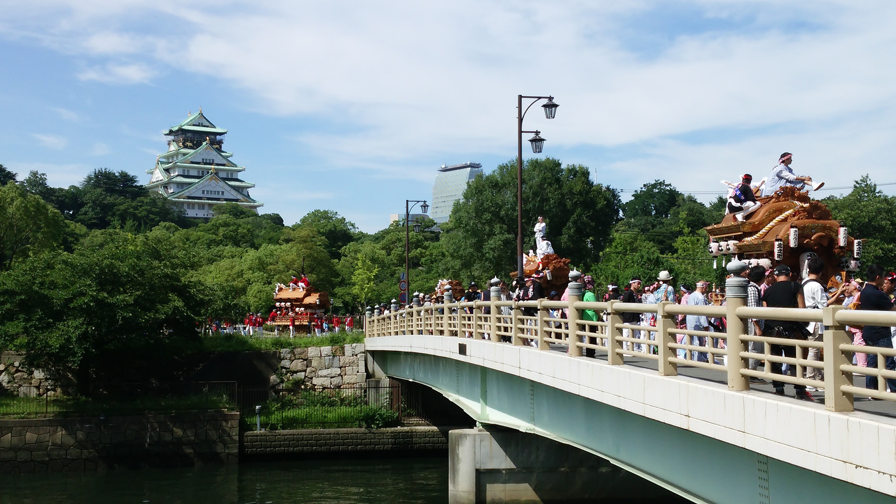 在大阪城公园的新鴫野桥,当地“城东DANJIRI联合会”的相关人员大约1300人,齐心协力地参加了摄影。从桥上可以看到大阪城和大阪商务园区,一睹大阪今昔的风貌。