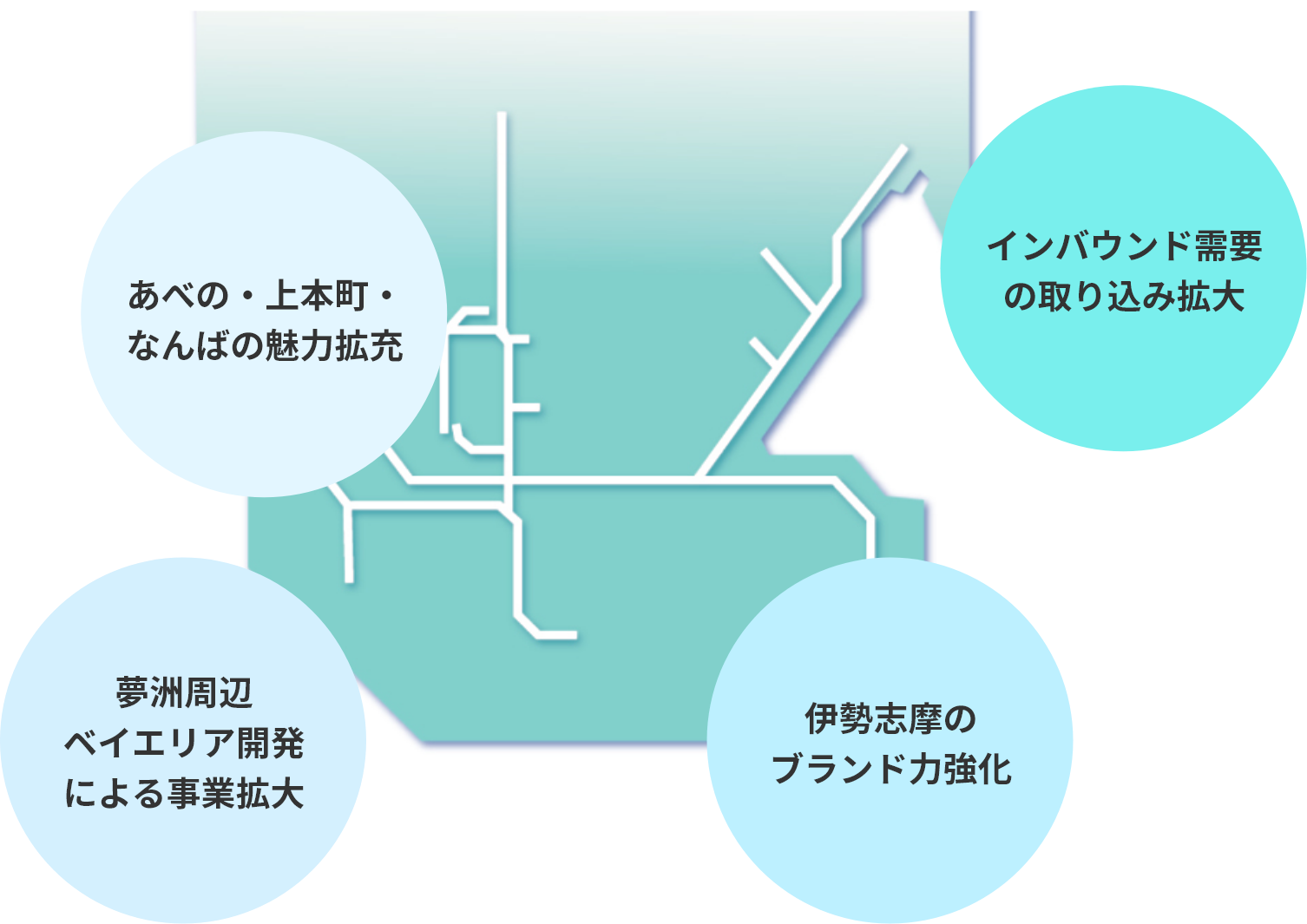 - 首都圏での事業基盤の整備・拡充などを通して、「沿線外でもさらに拡大し、新たなプレゼンスを創出する近鉄グループ」として進化していきます。