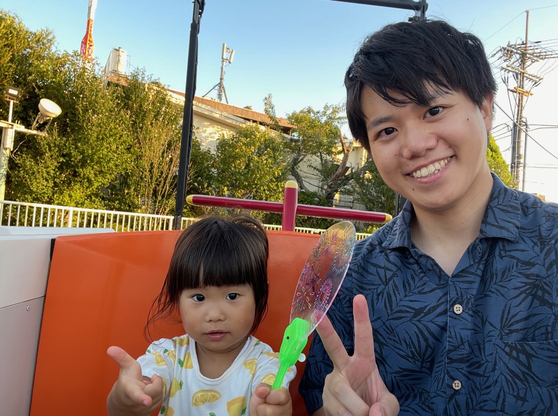 休日は子どもと外に遊びに行くことが多いです。3歳と0歳の娘がいますが、0歳の娘はまだ外で遊べないので、3歳の娘と二人でお出かけします。3歳になると話が上手になり、こだわりもはっきりしてきたため、好みの洋服を買いに行ったり、動物園や水族館に行って好きな動物を見たりしています。