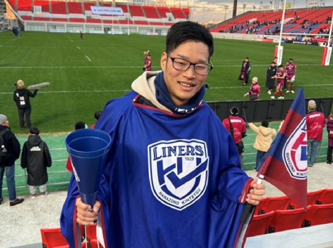 私は近鉄グループホールディングスが所有しているラグビーチーム「花園近鉄ライナーズ」を応援しています。学生時代からラグビーをプレイはしていましたが、ラグビー観戦についてはワールドカップなどの日本代表戦しか観ていませんでした。入社前からライナーズの存在は知っていたのですが、応援しているラグビーチームはなかったので良い機会と思い、入社を機に応援することにしました。ラグビーは冬のスポーツで、12月~翌年5月頃までがシーズンですが、東大阪市花園ラグビー場で開催されるホームゲームはほぼ毎試合、会社の同僚や友人と応援に行っています。ラグビーは、ルールが難しくとっつきにくいイメージがあると思いますが、生で観戦する魅力はどのスポーツにも負けないと思います。