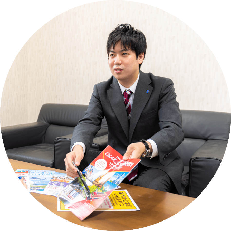 乗合営業課で面白さを感じているのは、業務の幅広さです。たとえば契約輸送業務では、コミュニティバスの運行を委託したい行政からの問い合わせへの対応や新規契約の締結をはじめ、受託が決まった場合は運賃・運行ダイヤの策定やバスの運行を手がける営業所との調整など、多岐にわたる仕事を任されます。また、広告宣伝業務では、広告代理店とコミュニケーションを図りながら広報物の制作を行います。大阪の名所を巡る観光バス「OSAKA SKY VISTA」の利用促進に向けた施策の立案・実施も手掛けるなど、バスに関するあらゆることに関わるまさに「何でも屋」。それだけに、ルーティンワークに飽きることがないのでいいですね。正直、近鉄バスに配属が決まるまでバスに関心がなかったのですが、今では新しい知識が増えるたびに、新しい仕事を任されるたびに、どんどん前のめりになっている自分がいます。近鉄グループホールディングスには、他にもさまざまなグループ会社があります。次にジョブローテーションで異動する会社はどんな事業を行っているのか、ワクワクしますね。